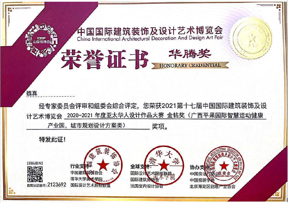 魏真(魏綺儷)教授在2021第十七屆中國國際建筑裝飾及設(shè)計藝術(shù)博覽會 亞太華人設(shè)計作品大賽獲得金鉆獎