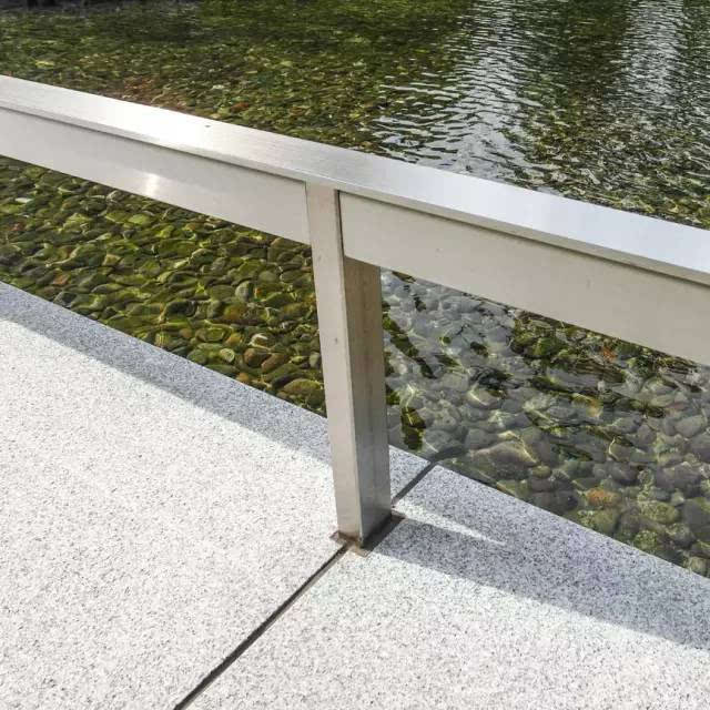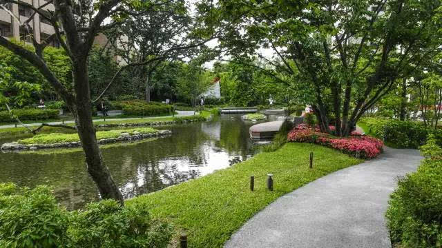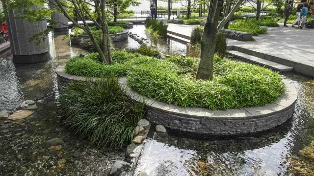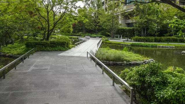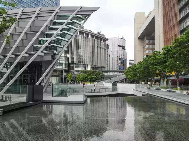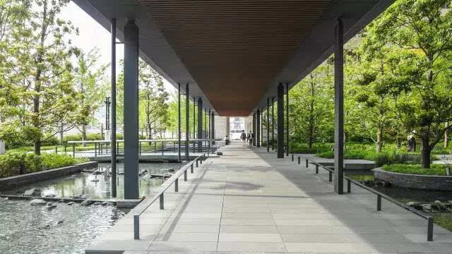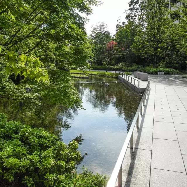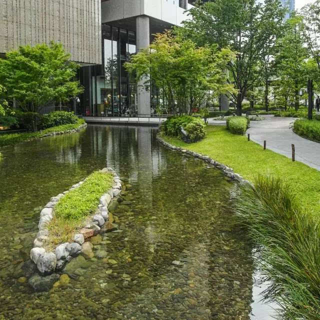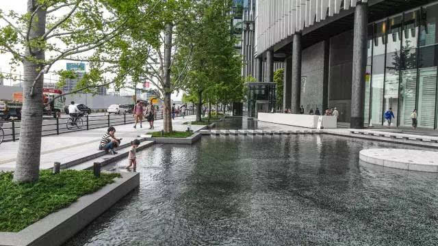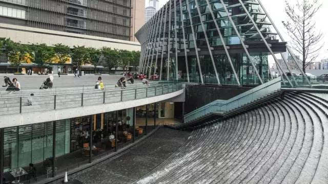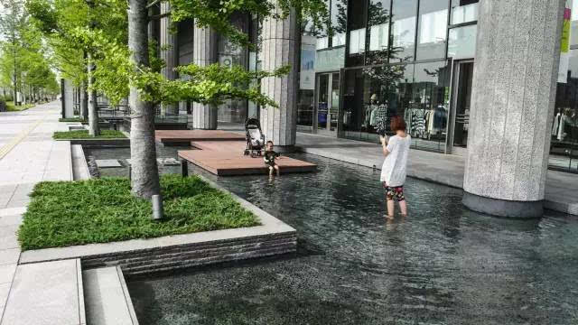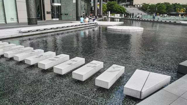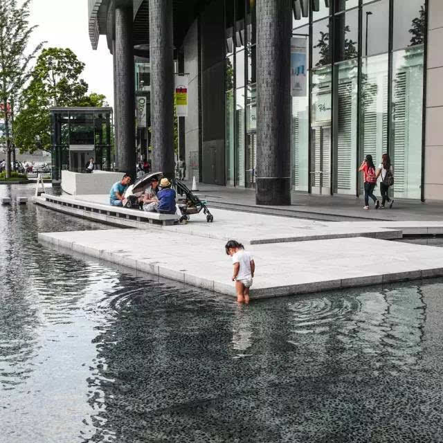 安藤忠雄的作品向來取借自日本傳統(tǒng)美學,廣場中以兩大水池為主景,穿道中間則設置低長石椅,幾分茶室長椅風格,其中一池中間則以一個個方型灰石橫跨水間,像是京都鴨川河面上的跳跳石,池水不僅作為景觀之途,更以戲水功能增添親水性,夏天來訪,不少家長任由小朋友們脫了鞋就下水玩,可是一點也不在意弄濕的衣服。
