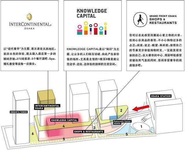 作為日本第二大城市的水都大阪,向來已富有熱情和活力的城市精神立足日本。2013年4月,被稱作“日本關系最后的黃金寶地”的大阪站北地區(qū)綜合性開發(fā)項目Grand Front Osaka 大阪一期工程正式完成并對外開放。該項目的整體設計理念由株式會社日建設計在2003年的國際招標中提出,并獲得最優(yōu)秀設計獎,此后,經(jīng)過包括政府機關、學術界、金融界、民間開發(fā)組織在內的12家合作開發(fā)者歷經(jīng)2006年兩個階段共同完善的提案后,才正式啟動。(該段引自百度文庫《日本關西復興的起爆劑——大阪 Grand Front 綜合體》作者:鄒兆穎